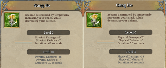 as you can see at level 9 it gives +32 and at level 10 it gives +23.