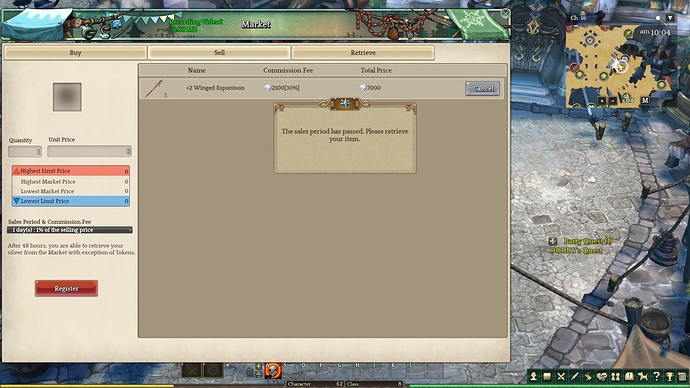 Where it happened (which map, which quest, which npc, etc) : Can’t retrieve expire item from market