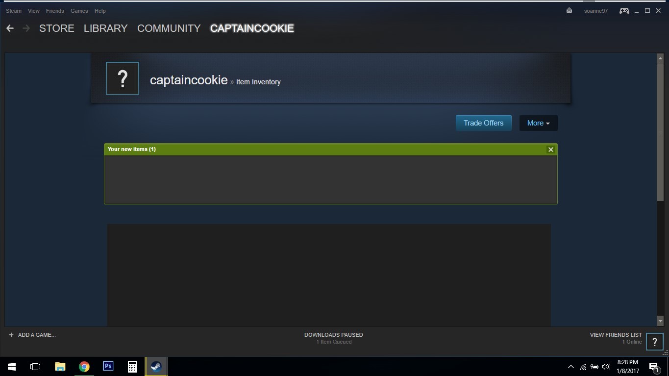 - Opened Steam Inventory and saw 1 new items added, but no descriptions.