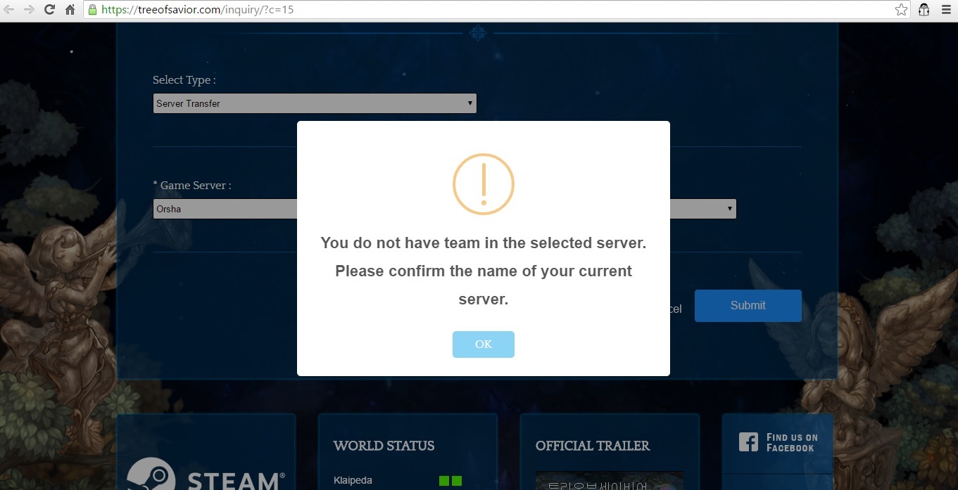 Hi, I’m trying to transfer my team from the Orsha server to the new South America Sever. However, when I select the server and the target server a window pop up saying I can’t trasnfer my team because I don’t have a team in the selected server, which I do btw. Is anyone else having this trouble?