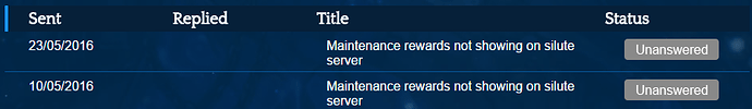 For example, when we had the login issue on silute, we had a reward, this reward only lasts until 05/16, i cannot see it on silute but i did on other servers, as you can see i sent the ticket 05/10, i’ve lost many other maintenance rewards since IMC moved Silute to Brazil.