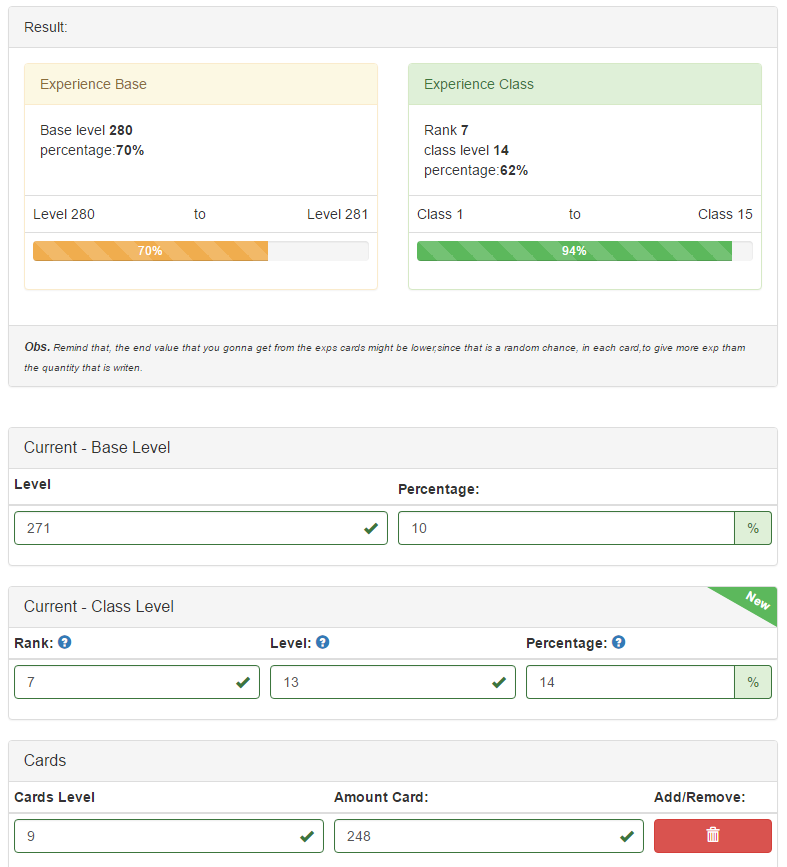 I’ve been using EXP Calculator from 3 website, one said I’ll hit LV 280 when I use these cards, two said I’ll only hit LV 277.