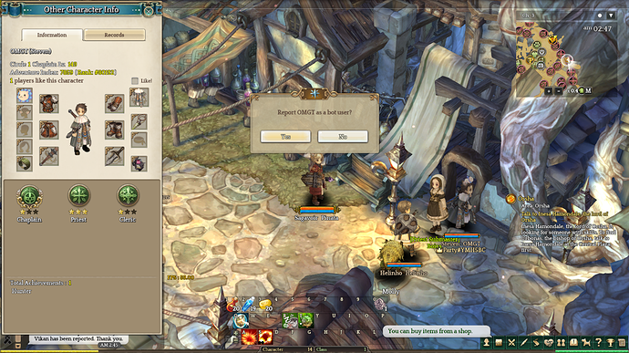 Hello boys and girls, you can’t find all the bots in fields. Tracking then is too much of a pain. So here is a way to report most of the Priest/Chaplain Bots. Since they use Blessing alot, they need to buy more Holy Powder.