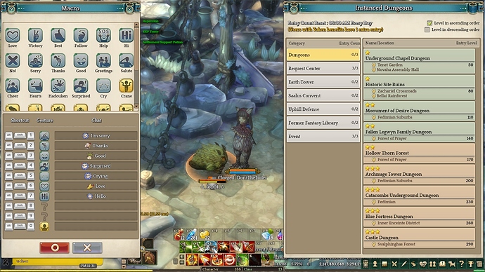 But also, please provide us the screen shots each character by dungeon command. or the dungeon UI shows up when you max out dungeon entry. That could cut our process faster.