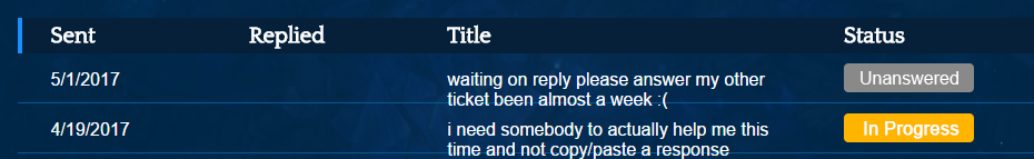 all they did was keep my ticket open and said “please reply with your character names and days of having the bug” then never replied back