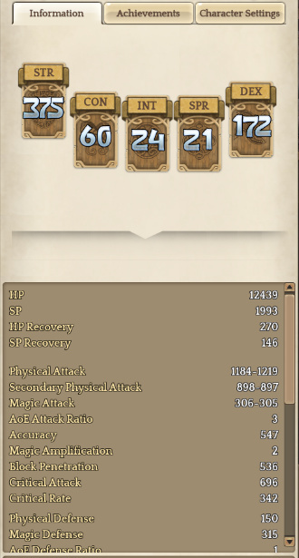Stat invested are : STR169 CON30 110DEX