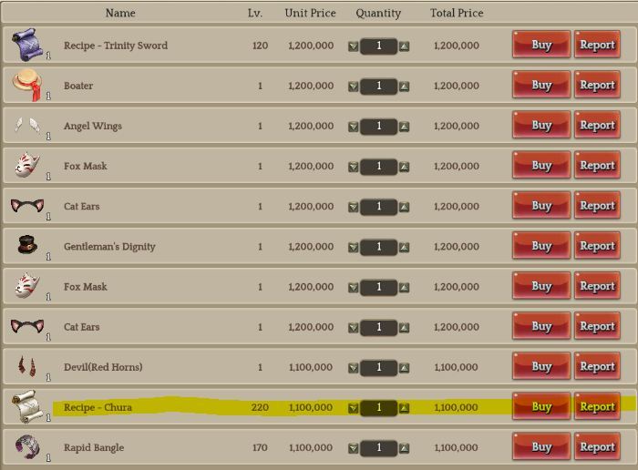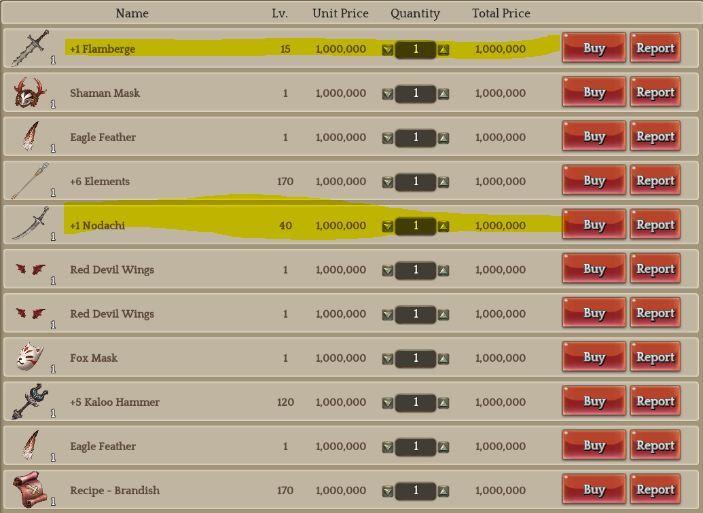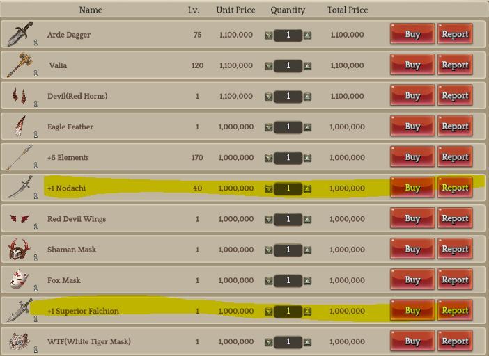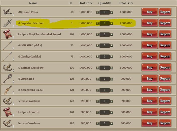 these are usually lowbie gears that has +1, +2, or +3 refinement. you might even ask yourself why would you sell a Falchion for 1.1m. LOL