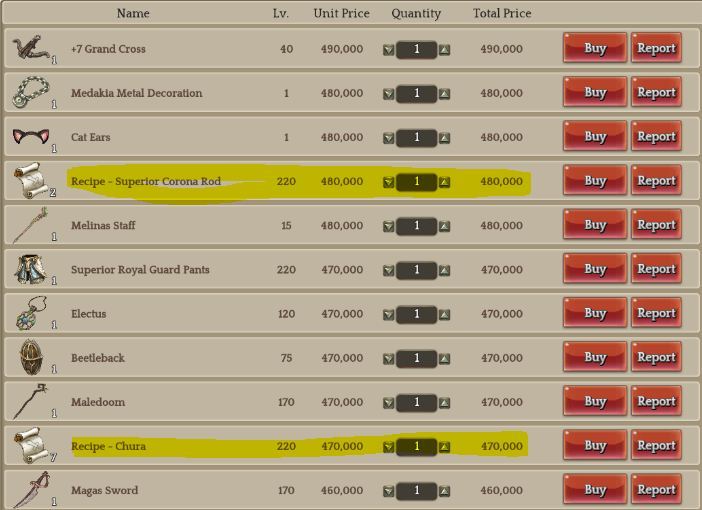 in example of my screenshots. there is 7PCS recipe of Chura at sale price of 470k each. 7 x 470k = 3mil and 290k. seems relevant? 3mil Purchased, 290k for Covering Tax from AH.