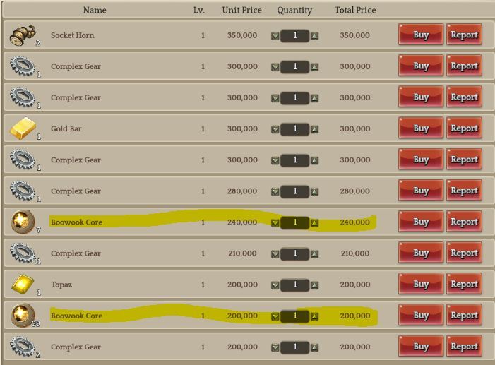 another example. There is 7PCS Boowork Cores at selling price of 240K ea. let’s do the math, 7 x 240k = 1mil 680k. 1mil RMT, 180K for covering the Tax from AH.