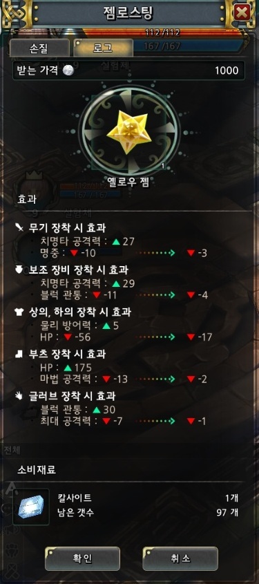 This blue gem for example, will enhance magic attack and decrease max SP on weapons, but putting that same gem on an armor will give a different effect. Gems can also be leveled up by sacrificing…something, I haven’t figured out what. Then you have Alchemist’s Gem Roasting which further enhances gems by decreasing stat penalty and increasing stat gain (so in this case the max SP penalty would be reduced and the magic attack enhancement would be further increased). They’re pretty nice to have as they add a bit of ability to customize your gear. Also, you don’t get a lot of them, so I think the item you mentioned that reduces death penalty is worth it, but then again you can prevent your gems dropping by just placing them in storage…