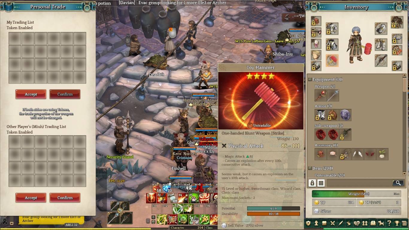 BibleBlack trade me a Toy Hammer, all the trade was okay… we got the alert that the item will lose potential… we BOTH are TOKEN USERS, both tokens are marked as ENABLE - As you can see at this Screen Shot, that i take minutes after the trade with BibleBlack, just to prove this “AWESOME” bug(??)…