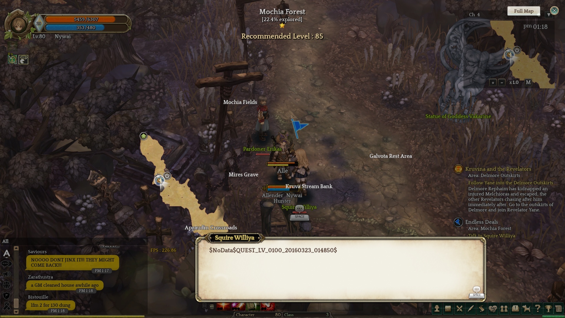 An NPC that runs onscreen (Sorry, it caught me offguard, could not SS ontime) after turning in a quest on “Elder Eloizard” has a phrase in Korean [Marked with red]: