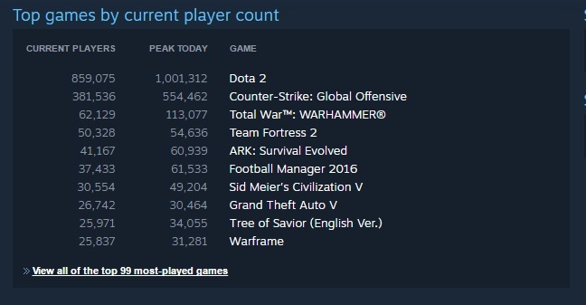 We are peaking recently at about 25 thousand players less than the all time peak, the numbers are also steadily declining; day to day; week to week.