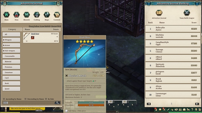 hello ty sir! i really want to still go for it though coz i still dont have a 120 weapon but i dont like buying things from the market. can you pls post a screenshot of that bow in your journal for further confirmation. that would really mean a lot to me thank you in advance
