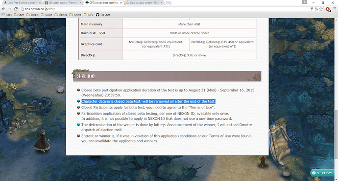 So, I took a quick look at the Japanese version of ToS and surprisingly, they are going to wipe all character data after they finish testing. Now, I don’t know Japanese and I could be wrong about this because this is just google translate.