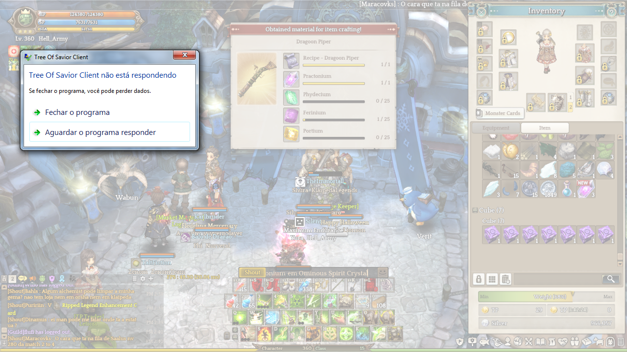 Game just completely freezes after trying to ping items on chat.