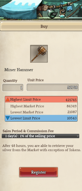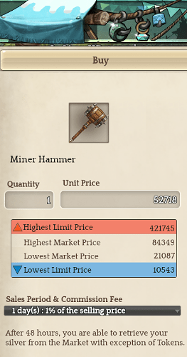 Unable to sell items due to it thinking min is $50K+ higher than it is. even when there is only 3 on the market at $2000 EG- Miner Hammer., Self Bow (4000, thinks the min is 10k) (This is on the Orsha Server).