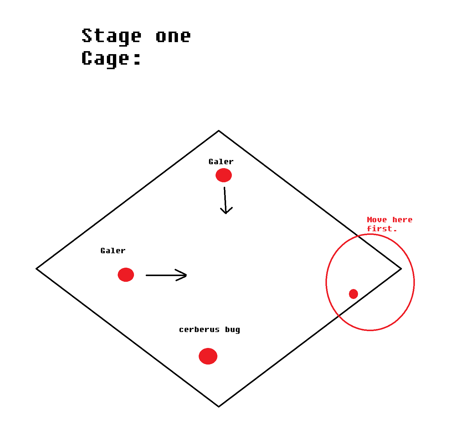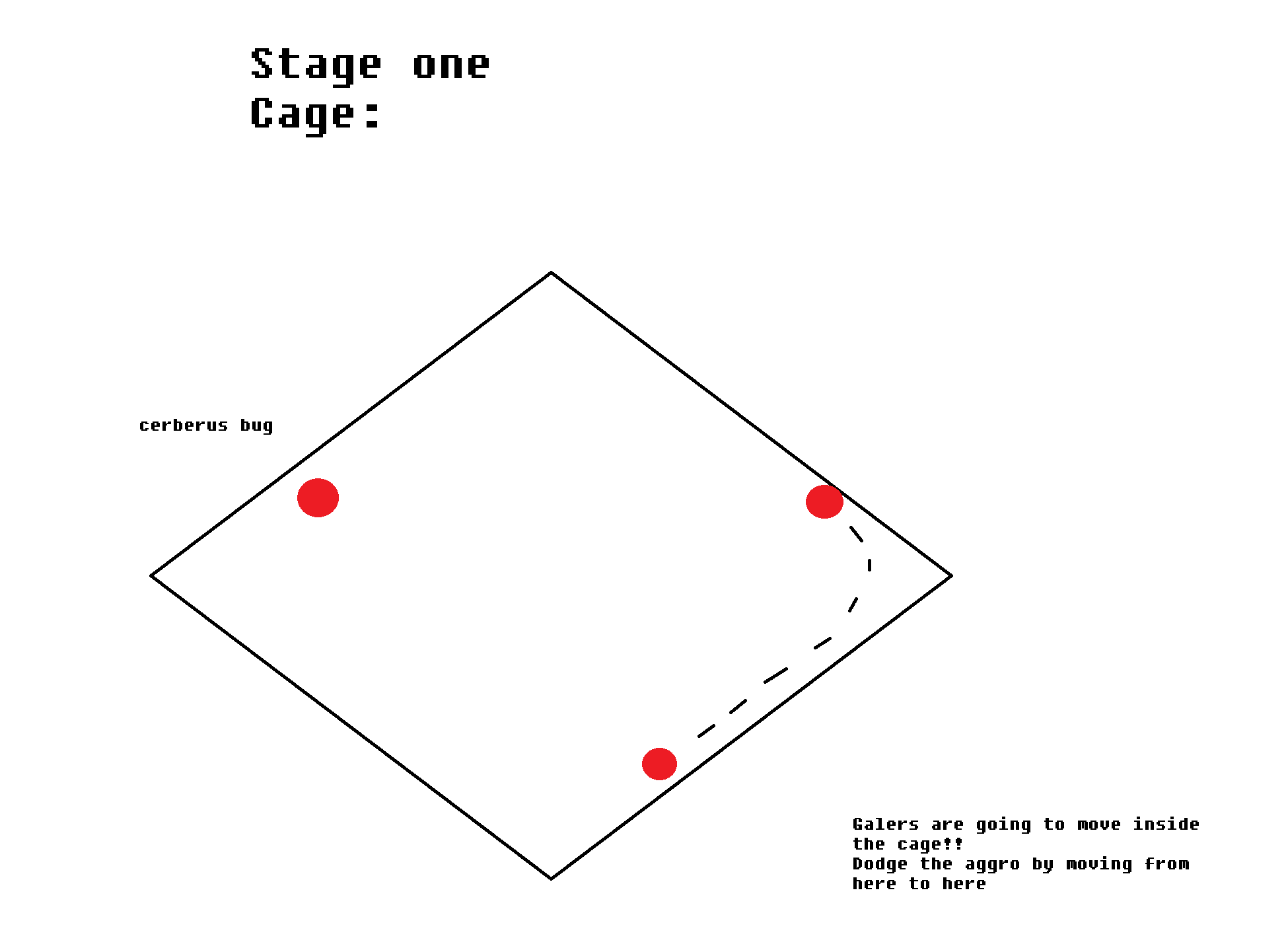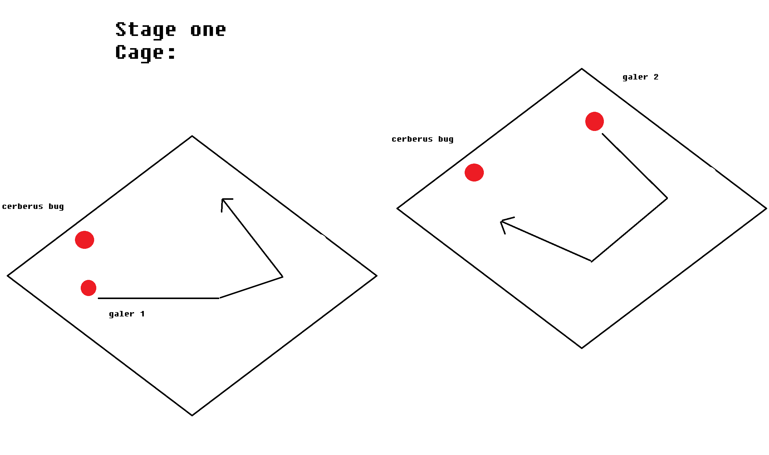 The cerberus that shoud NOT be in the first stage, respawn/ teleports at the same southwest corner.