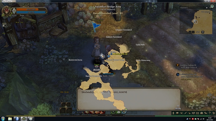 During a quest called A Blessing After All talking to npc Joana on Aqueduct Bridge Area map it shows a $NoData$QUEST_LV_0100_20151102_010879$ text message.