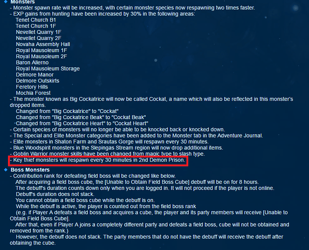 i dont see the problem of the fast spawn of the key thief monster…i mean come on! the map has like 10++ players roaming around hunting that mob…and it has only 3 channels…its not easy since its a race to kill that thing