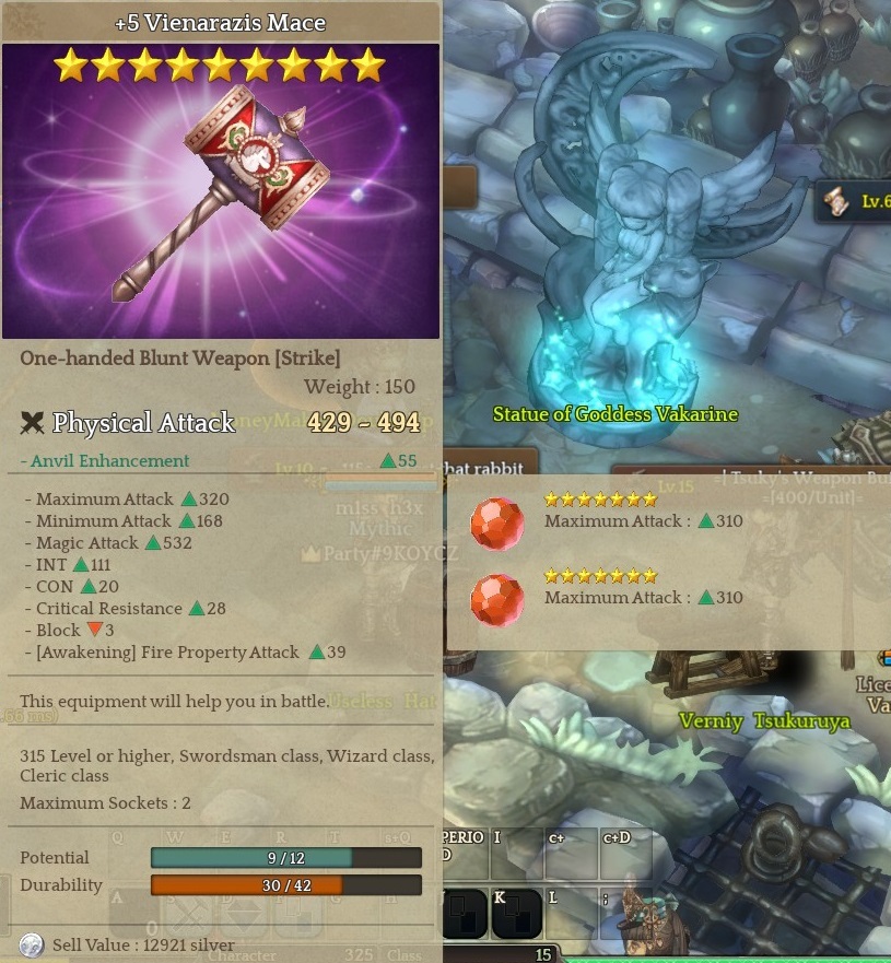 [klaiped] S> +5 vienarazis mace, +39 fire atk awakening, 2 level 7 red gems for a pract and 50 shards