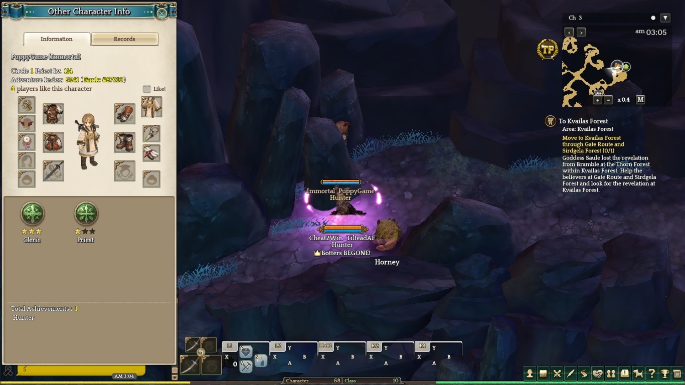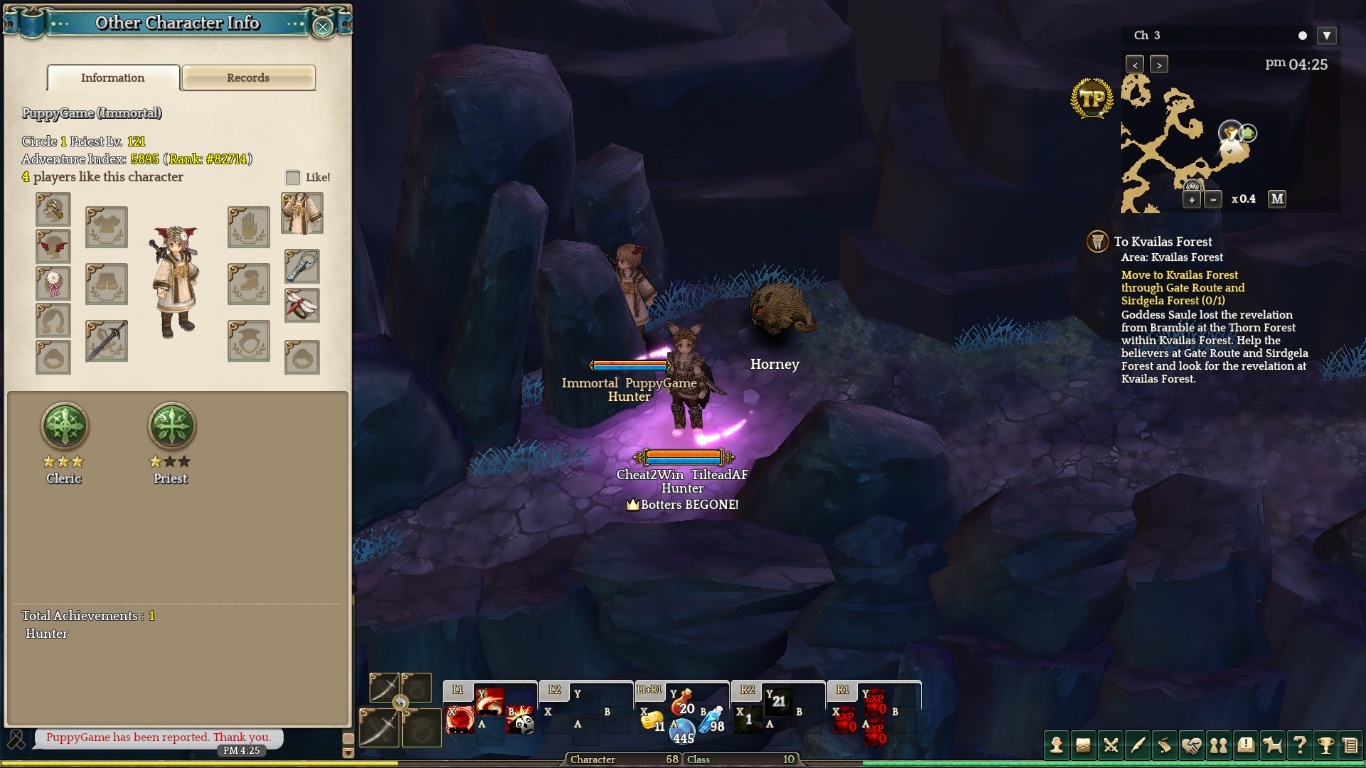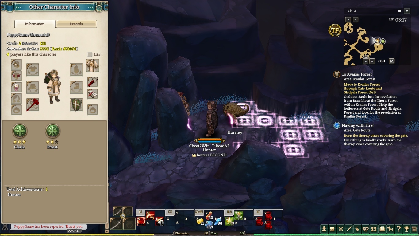 He is always there, botting, sometimes when I am there farming my shredded (for days with no avail), this bots logs out or change channels. This bot always carry a different weapon, sometimes it doesn’t have gear.