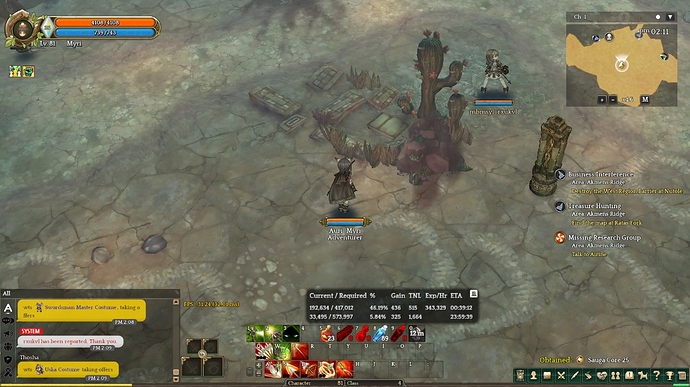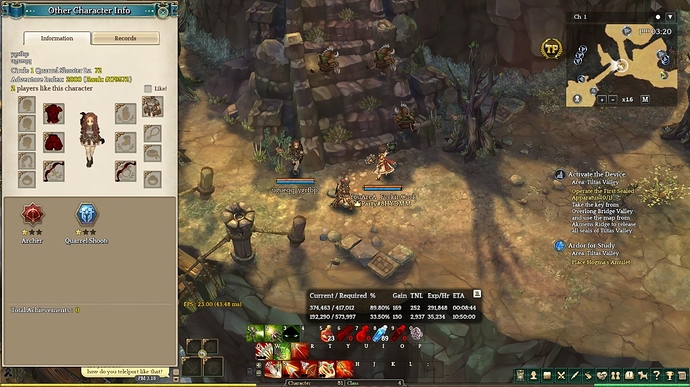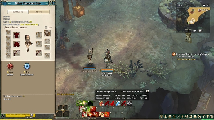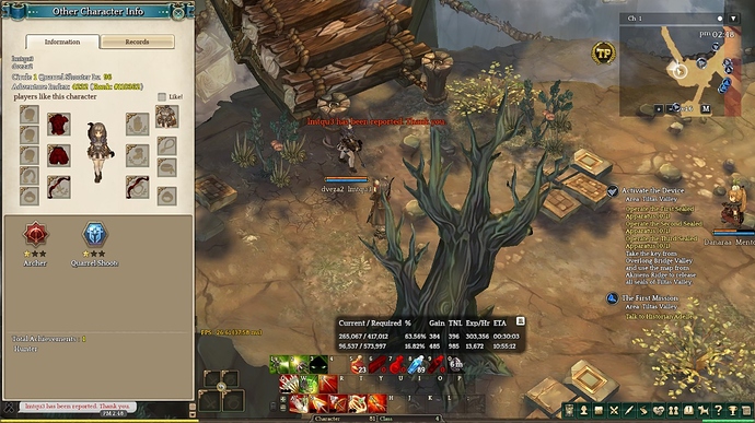 Bots. All gear broken, archers still wearing basic beginner equip, no accessories. Only rank 2 at level 90+? Teleport to random locations when there are no mobs nearby. Basic attack mobs over 2 screens away, attacking abnormally fast. No reply to pm, party, friend request, or chat.