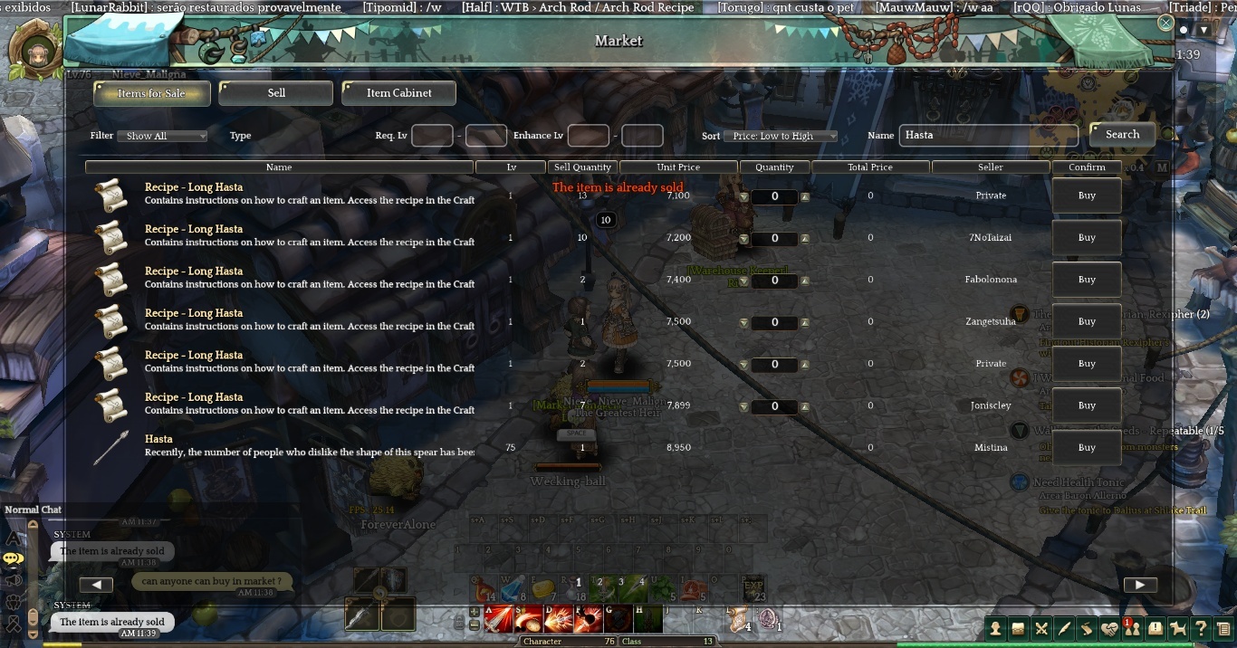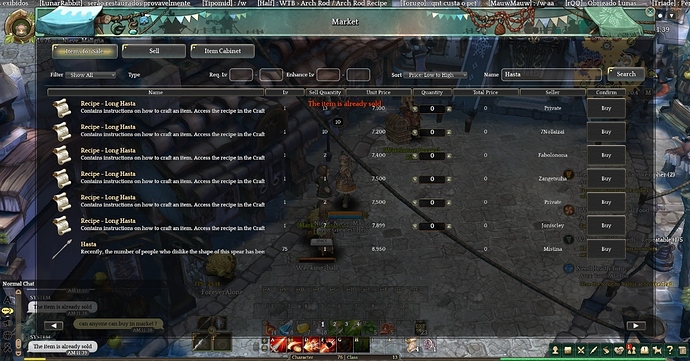 Everything else is fine, but for Hasta and Long Hasta recipe it’s said “the item already sold” for evey price.