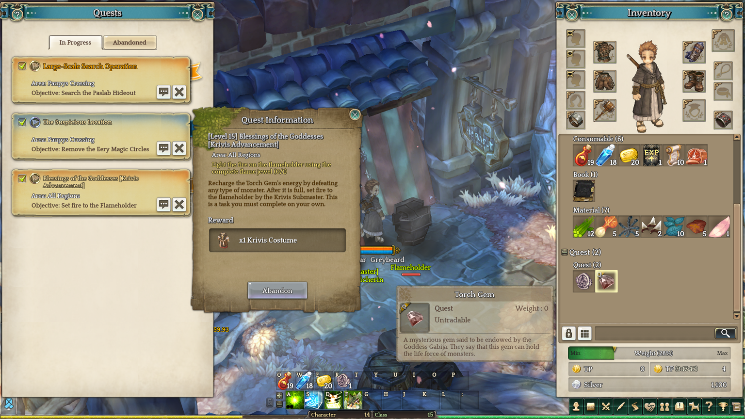 Bug Description : Cannot interact with Flameholder after reaching 100/100 (fully charged) on the Torch Gem. I’ve tried abandoning the quest and re-doing it, restarting the game and steam, and changing Channel. I can talk with the Krivis Submaster only.