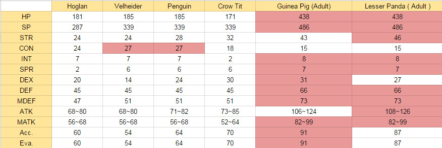 how about lesser panda and guinea pig? any info in their stats and special buff?