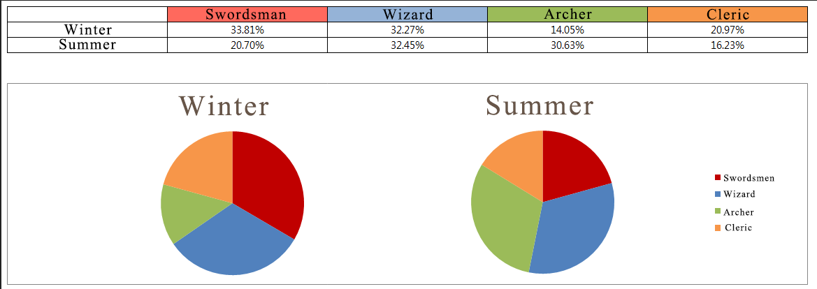 As you can see, there is little change for the wizard population, however Swordsman & Archer classes have the largest net of player changes.