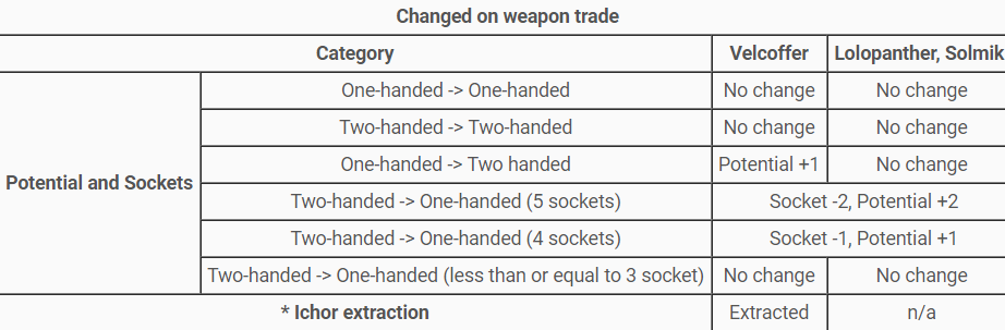 IMC didnât say anything about offhand exchange, but I know itâs working for velcoffer, hoever, for solmiki, things can be quite different as miki offhands have only 1 socket and 2 sockets for 1H. Can someone confirm on how this exchange will work or not if I were to exchange miki offhand to 1H / 2H ? thanks.