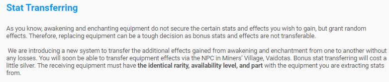 Regarding the “buy it from market”, you’re free to point out the +16 varna rapiers sold in fedimian markets. Hint: there is none. Mostly because whoever does some +16 weapon usually does it for itself, not for selling. And if someone randomly drops a rapier…the market for rapiers is so small that taking the risk to enhance for selling is meaningless. Not that i’ve seen unenhanced rapiers sold either, anyway. The only one was the one i dropped myself before the news of the changes…and that i sold because i already had done that +16 savinose, back when they were equal. So, again, empty words.