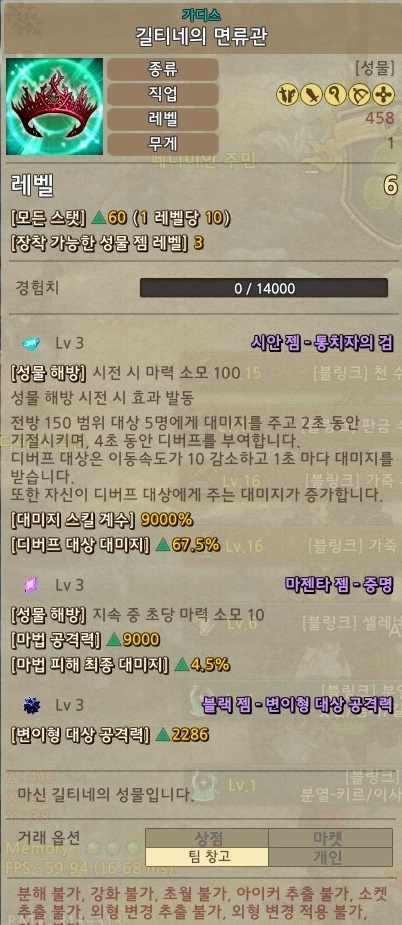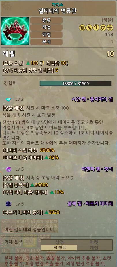 Yet the system is so obnoxious that only the top 1% of the playerbase will ever bother trying it out. The majority of the players will just equip the crown for +10 all stats and forget about it. And if they end up getting a decent black gem from the 20b WBR cube, cool, they will equip it at lvl1 and forget about it too.