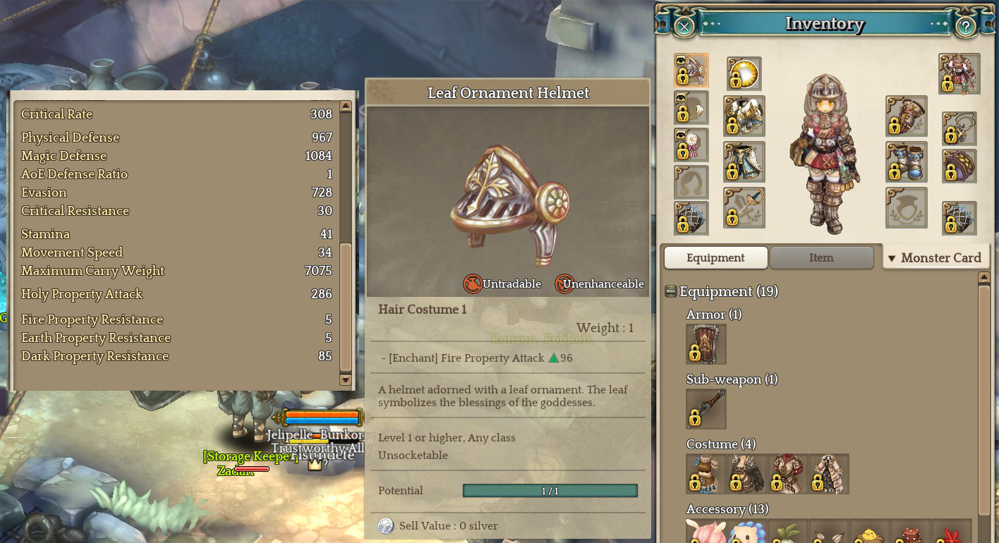 Bug Description: My Leaf Ornament Helmet has Fire Property Attack 96 enchantment, but equipping the helmet does not give that stat. Looking at my stats confirms this too.