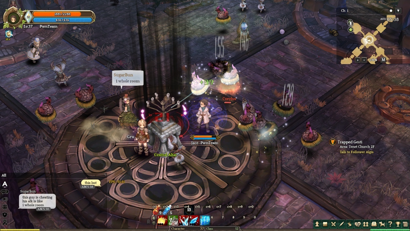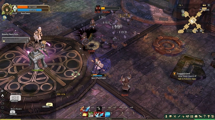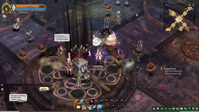 if you can see some of the screenshot with aoe damage. it tells the swordy is striking with AOE damage, and the Cleric guys is leeching from those exp.