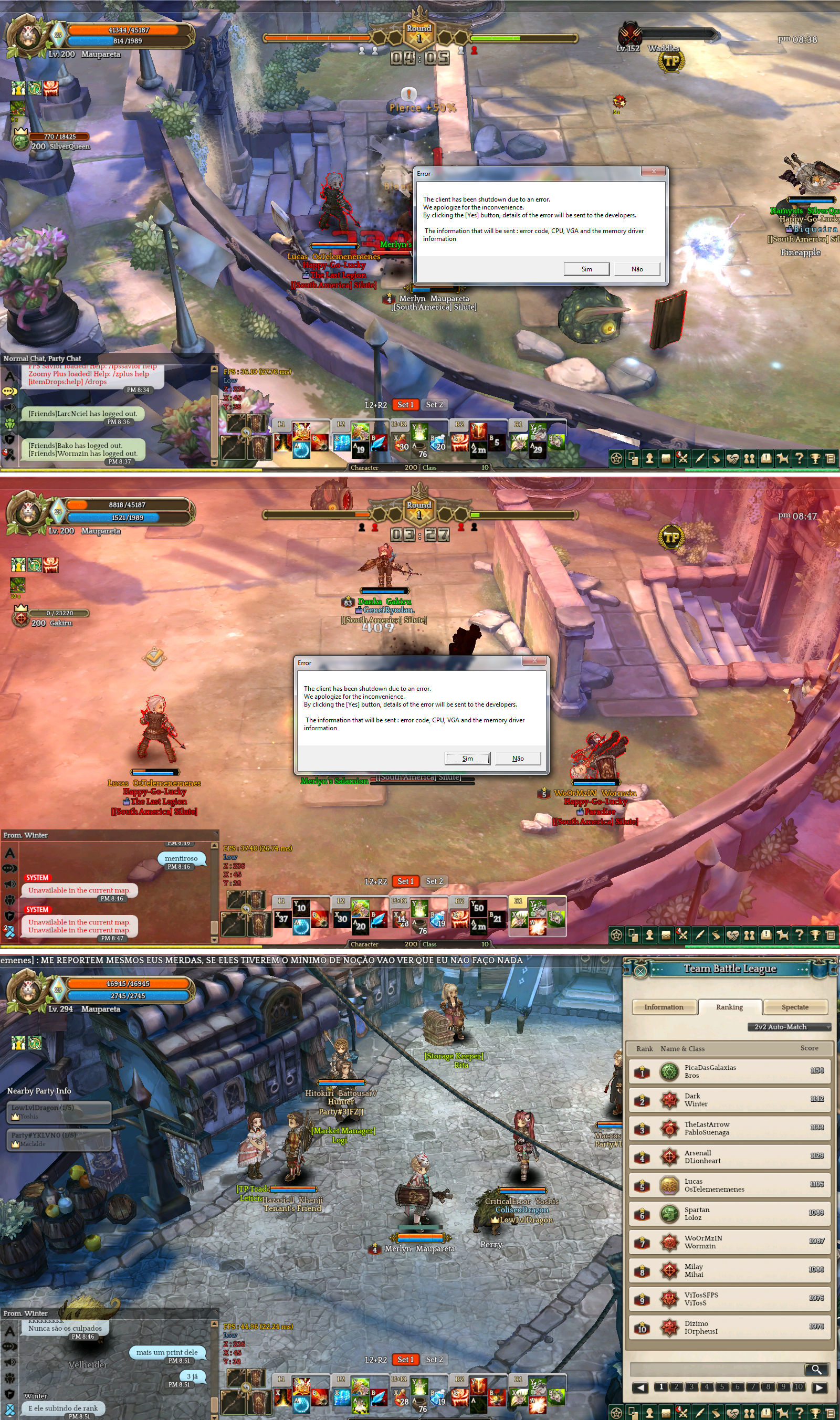 Hoje foi a vez do player “OsTelemenemenes”, me crashou em 3 partidas seguidas. Engraçado que tem 3 archers entre os 5 primeiros do ranking, e vejam só… justamente os que abusam do bug.
