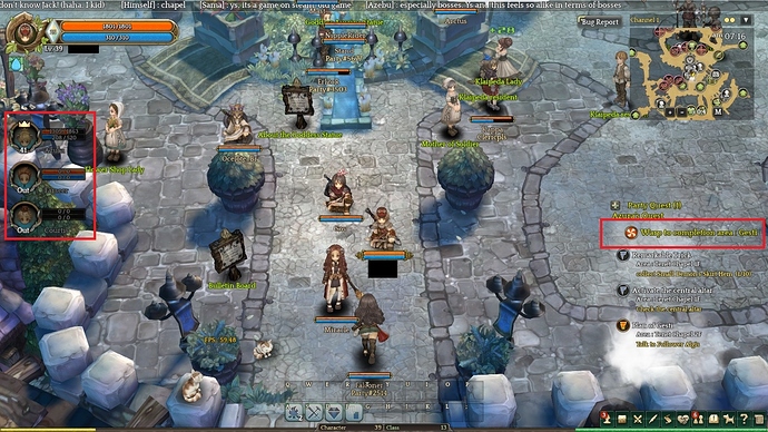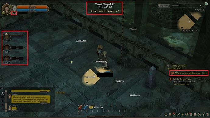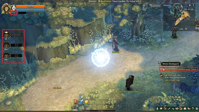 While you’re in a party change character from your account while staying in the party (Picture 1). Then pick your lowest level or any character (create a new one if you’d like) then log in with it (Picture 2). Upon logging on you will notice that you are still in the same party from your main (picture 3). If you click the warp key or press backspace you will port to that location. As you can see in picture 4, I am porting out. While Picture 5 illustrates me successfully porting to a higher level map. I believe it only works if one of the party member haven’t turned in the quest line and if the quest share is only enable.