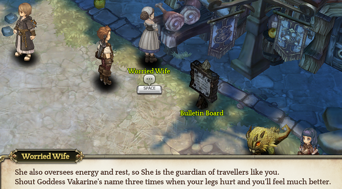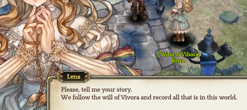 - Says { Vibora } and { Rena } on the NPC, but says { Vivora } and { Lena } in the dialog.