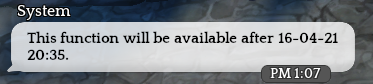 Bug Description : Whenever I try to purchase off of the item market, I get the error message: “This function will be available after 16-4-21 20:35”.