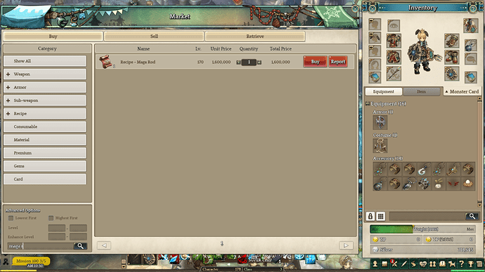 Bug Description : Maga Rod seems to be bugged for market listed it and payed fee 80k silver, but no one can find it in market also cant link it in shout due to 150 character limit.
