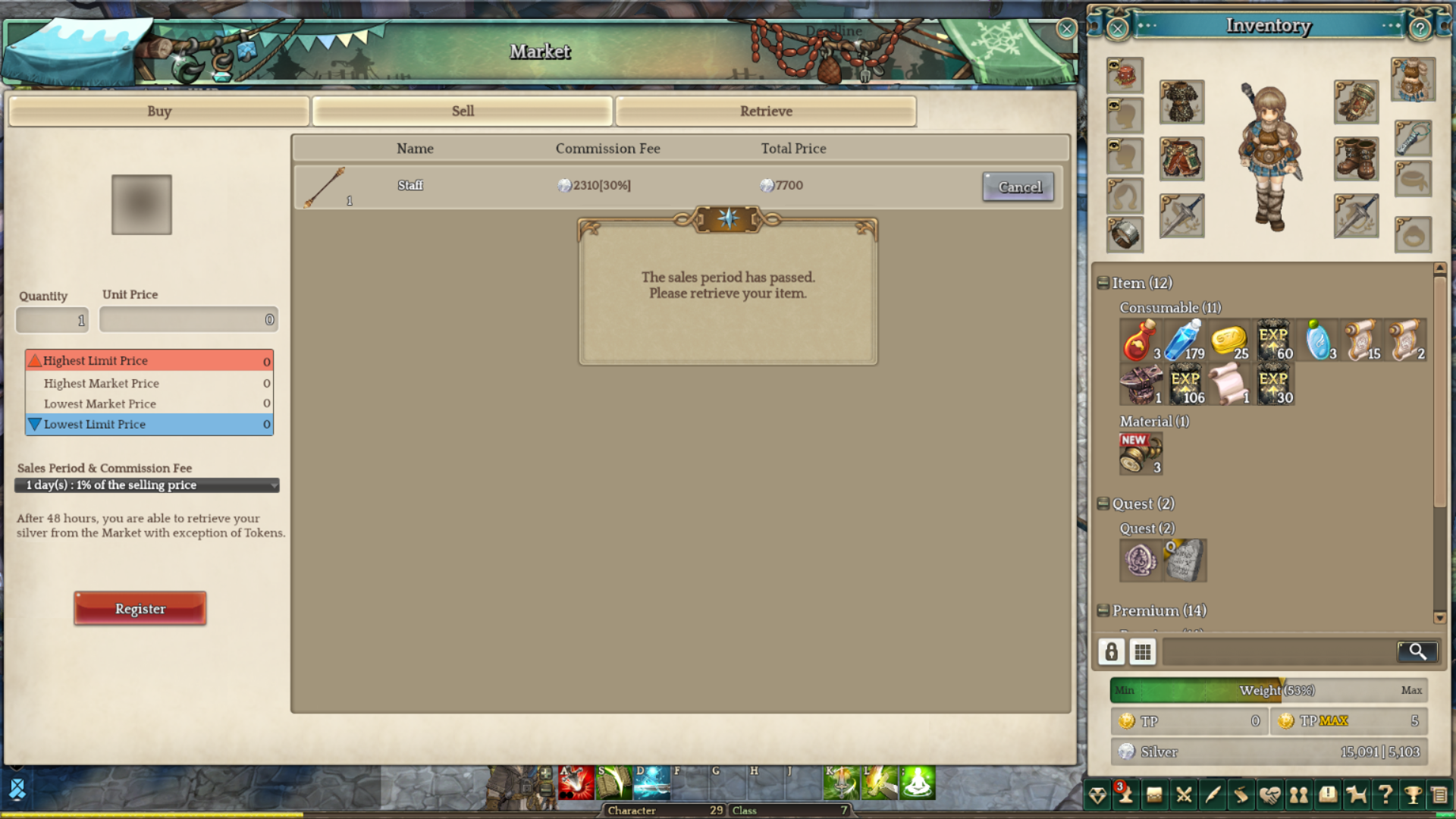 Description: Item unable to retrieve; The sales period has passed. Please retrieve your item.