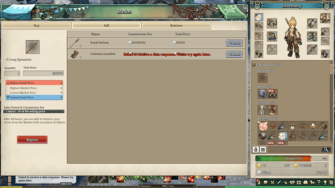 Cant put items on market more than 2 with premium. When attempting red message appears “Failed to receive a data response. Please try again later”