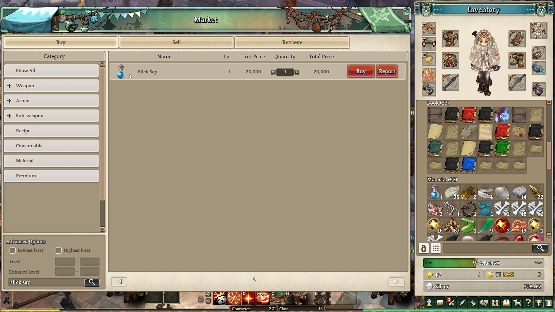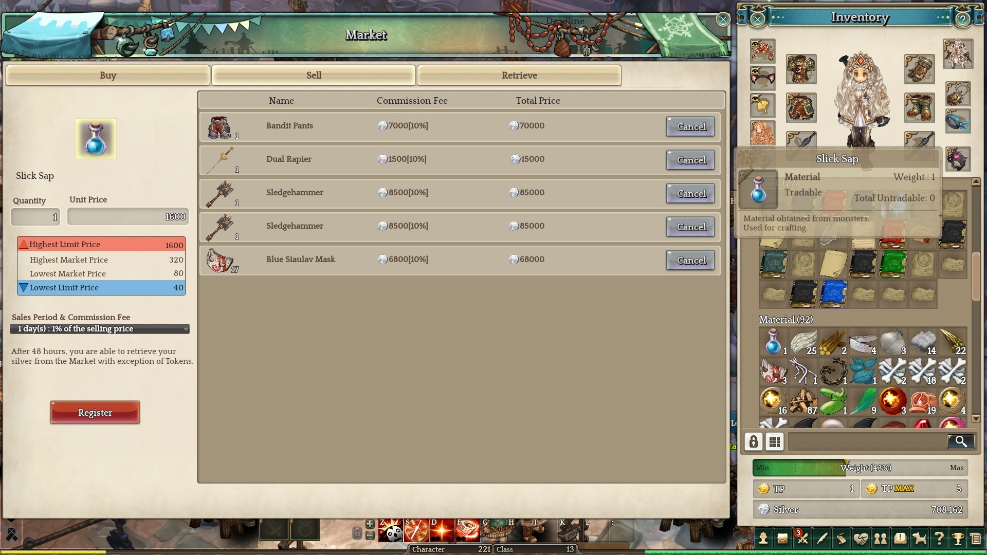 Meanwhile, I can’t sell slick sap for over 1600 silver each