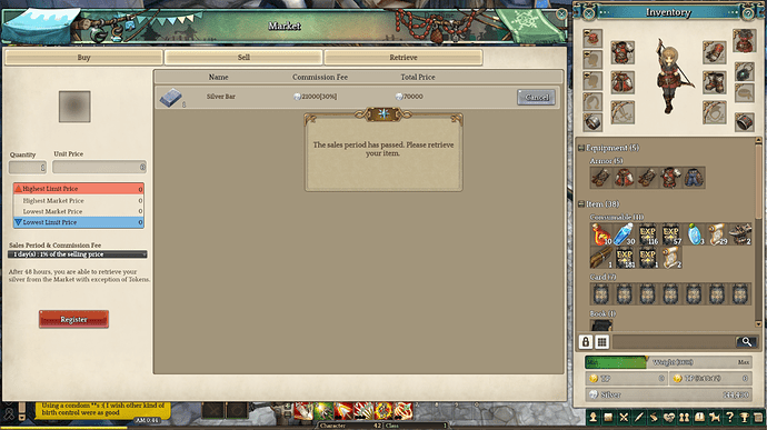 An item which was unsold in the market after the period lapses cannot be cancelled or retrieved. The item counts as being on the market and takes up one of the “market slots”