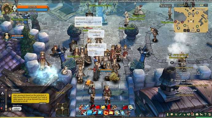 After checking the AH for some items and not finding much I decided to log out. But during the brief pause before the character screen shows I noticed a GM just sitting on the ground in front of the bank. I thought it was some kind of fake at first until I saw they were wearing the clothes shown on the loading screen. Their name was something along the lines of [GM] Rose, I’m not sure if that’s right though since I didn’t have much time to take it all in.