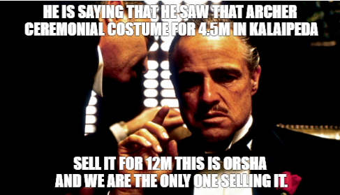 i found a person telling me that i need to pay taxes, he was trying to sell a costume for 7m (finally someone selling “decent”) he told that need to give him 7.7m because taxes, he was the only person selling it, since we have so little people the market is a monopoly cancer.