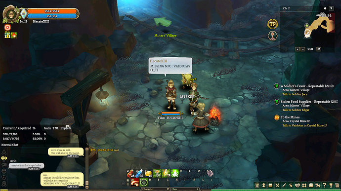 The main quest in the Crystal Mine is bugged… After doing the quest where you have to make the carts (blocking the way) explode, then fight some vubbes for 2 mins or so… once you enter Crystal MIne… you will not be able to see Vaidotas inside… Thus, you cannot proceed with the main quests… you will remain in that area and there is no way on advancing to the other floors.