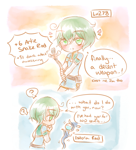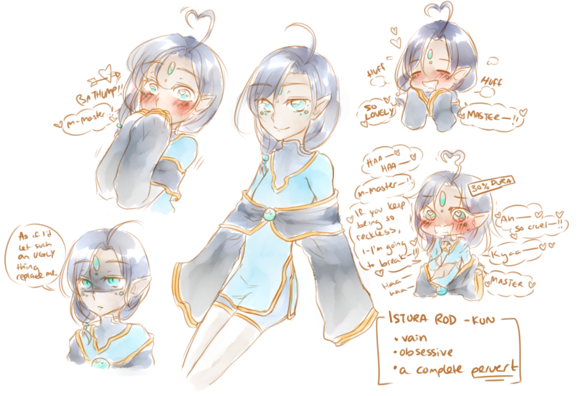 EDIT: tsukumogami for tree of savior: if you use an equip for 100 levels it will gain a spirit (lol). just because i wanted to draw istora rod -kun who is a complete pervert