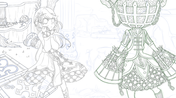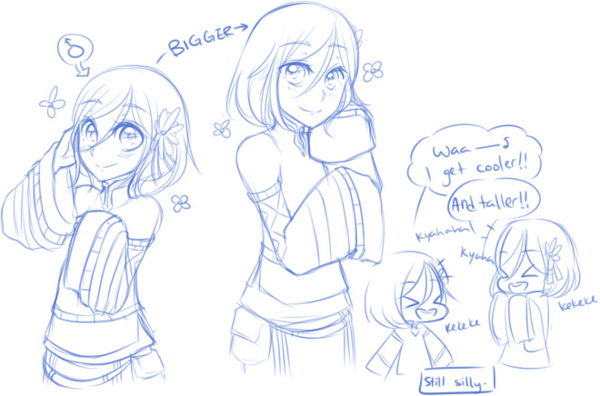 doodles of my chara in the wugushi outfit